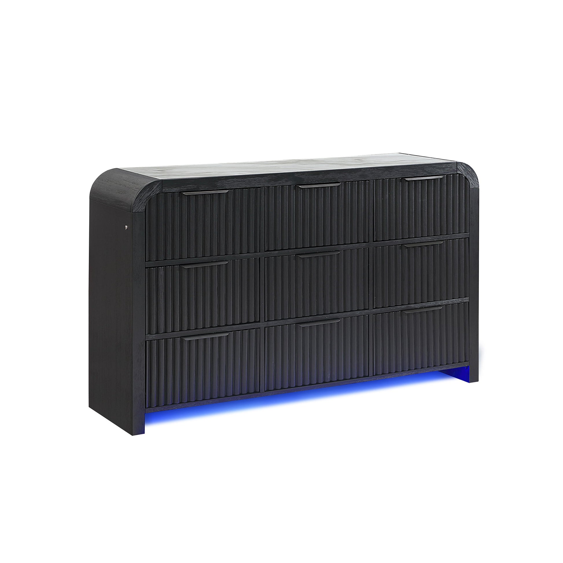 Beverly - 5 Piece King Bedroom Set With Cooler, Fluted Detailing, Partial, Low Profile Design, Spacious Drawers, LED Lights - Black White