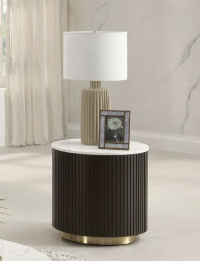 Manilla - End Table With Marble Top - White / Walnut
